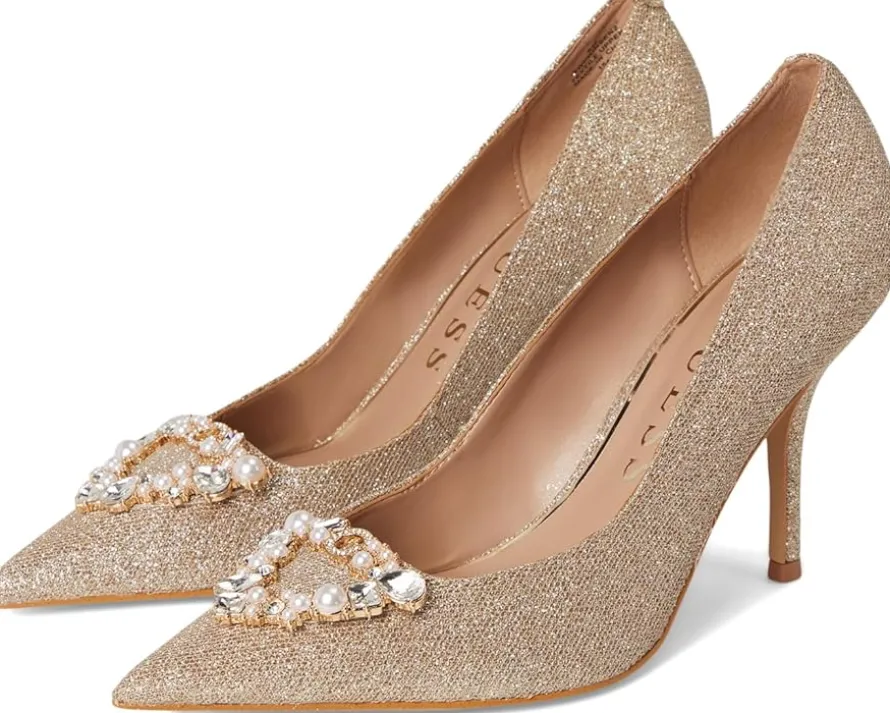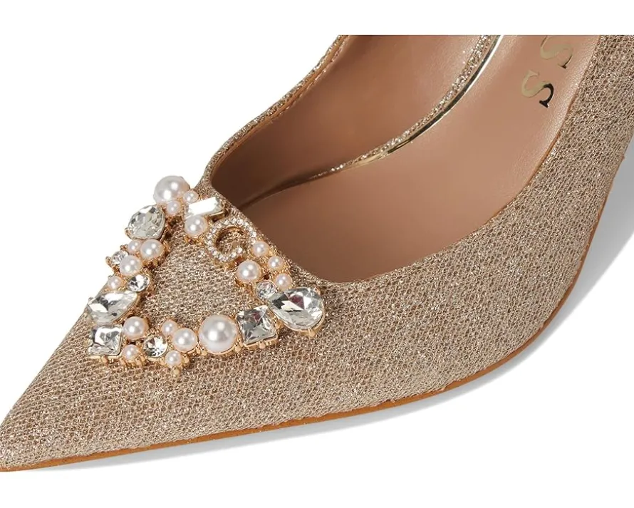 - The GUESS® Prinsen pump is anything but ordinary. The beautiful silhouette, rhinestone embellished ornament and stiletto heel features a cushioned leather insole for all-day support and a synthetic rubber flex outsole that moves with you.
