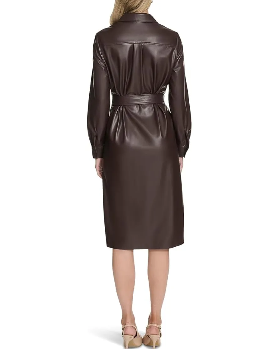 - Spread collar neckline and long sleeves with buttoned cuffs.