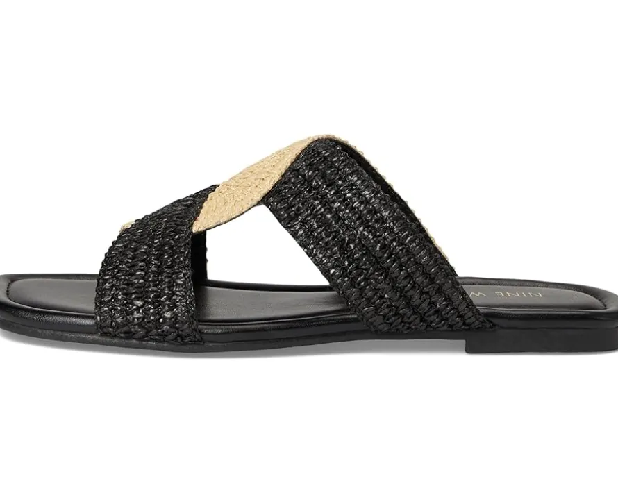 - Stay stylish in the Nine West® Quara casual flat sandals. Featuring a slip-on silhouette, woven detailing and a modern square toe. This sandal is the perfect wardrobe staple!