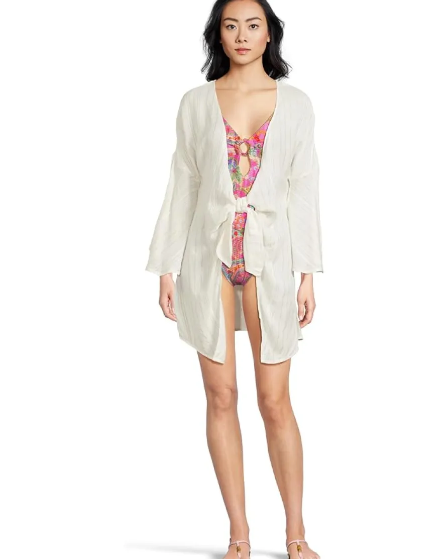 - Plunge into the warmer weather with woven Radiance Plunge Tie Front Tunic from BECCA®. Tie front tunic with adjustable scarf tie for a custom fit. Textured woven metallic stripes.