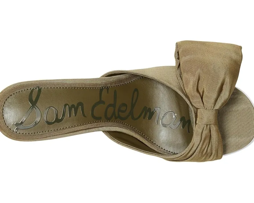 - Delicate and dramatic, the Sam Edelman® Ragan Strappy Sandals pair a dainty bow with a sculptural flare heel for a look that’s effortlessly elevated. The slip-on style heels come with a polyurethane upper, polyurethane lining, and a polyester insole.