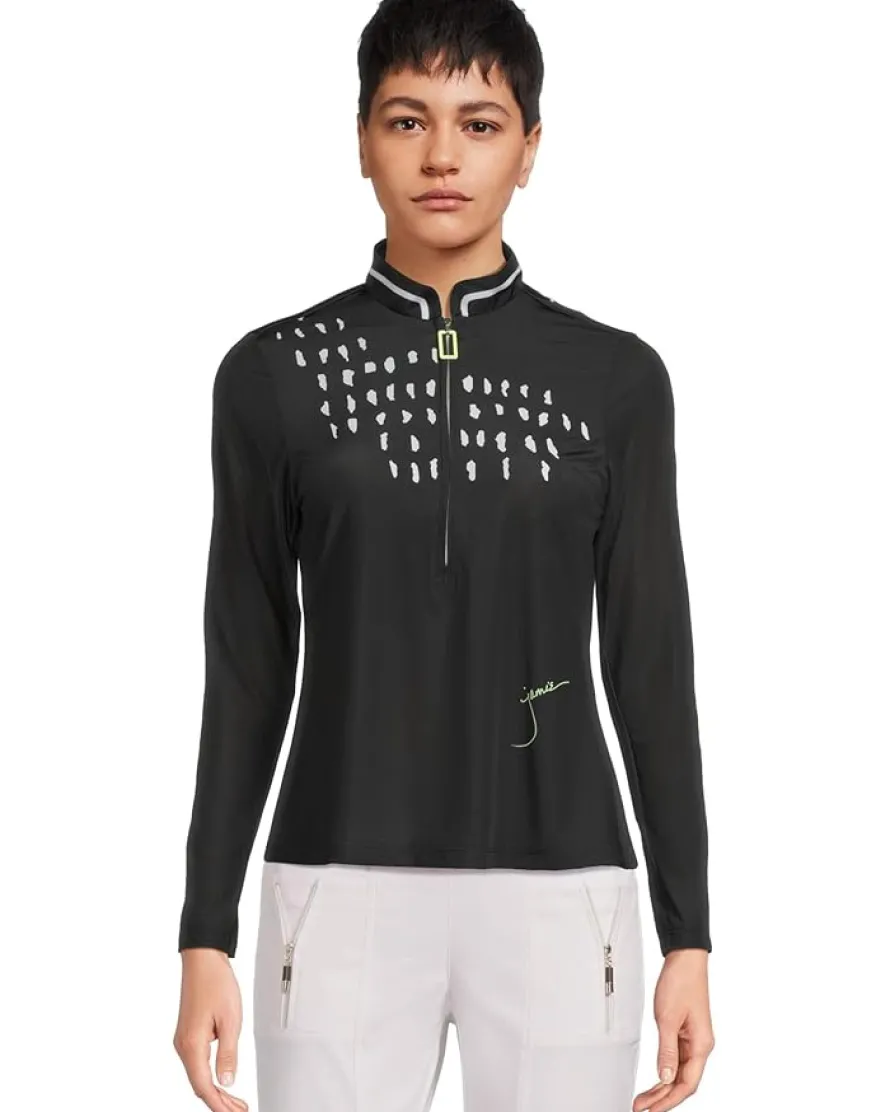 - The Jamie Sadock® Raindrops Print Long Sleeve Sunsense Top blends comfort and a hint of style. The pull-on style top features a Mandarin neck, a quarter-zipper closure, an eye-catching print on the upper body, long sleeves, and a straight hem.