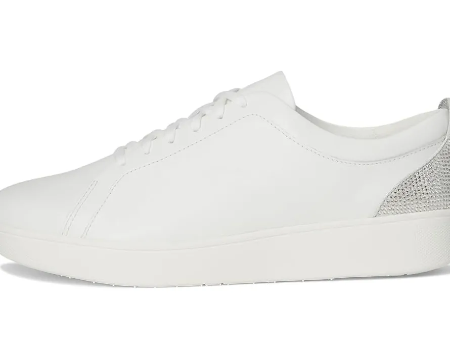 - True classics. With clean styling and an old-school ‘tennis shoe’ shape, the FitFlop™ Rally Crystal-Backtab Leather Trainers are the sneakers you can’t live without. The ones that’ll work with your whole wardrobe – jeans, dresses, tailored suits – season after season. These shoes are ergonomically engineered to help optimize your body’s alignment, natural movement, & energy. Their ultra-light all-day cushioning Anatomicush™ midsole with flex grooves across the bottom lets your feet move freely. The leather upper is styled with a shot of shimmer at the back. They are made of a rubber insole and mesh lining. APMA-accepted, these sneakers are softly padded and offer natural arch support. These lace-up sneakers will become your go-to choice on busy days when comfort is non-negotiable.