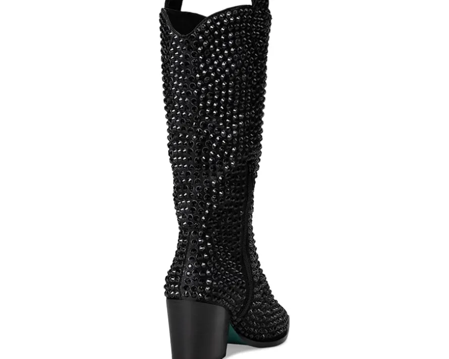 - Add some bling to the classic cowboy boot style with the Blue™ by Betsey Johnson Randy western boot. Whether you’re heading to a country concert, a festival, or just looking to make a statement, these sparkly boots are a perfect choice. This snip toe pair has a mid-calf profile with allover studded design and side zipper for easy entry.