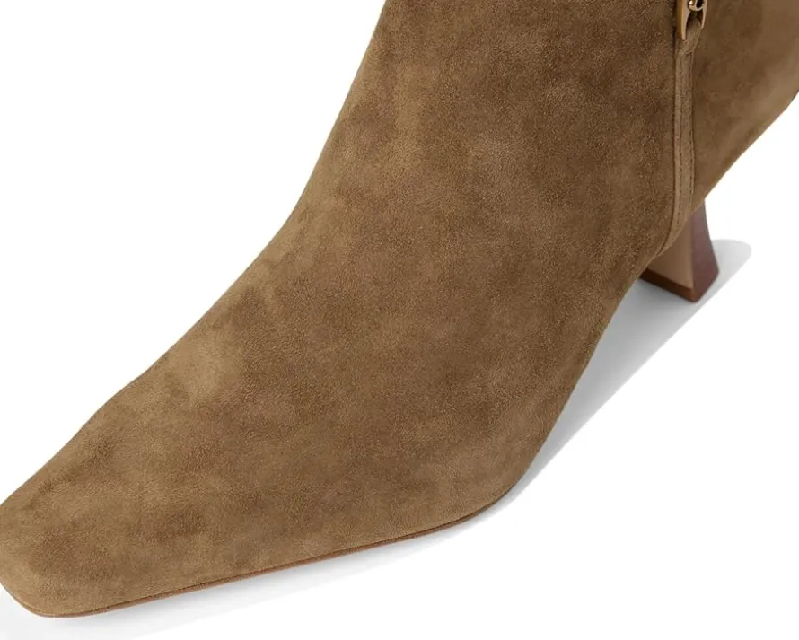 - From morning to night, elevate your chic style in the COACH® Raquel Suede Boots. Featuring a side zipper closure in a square toe silhouette with a kitten heel, these boots are crafted from a smooth leather upper, leather and textile lining and a leather insole.