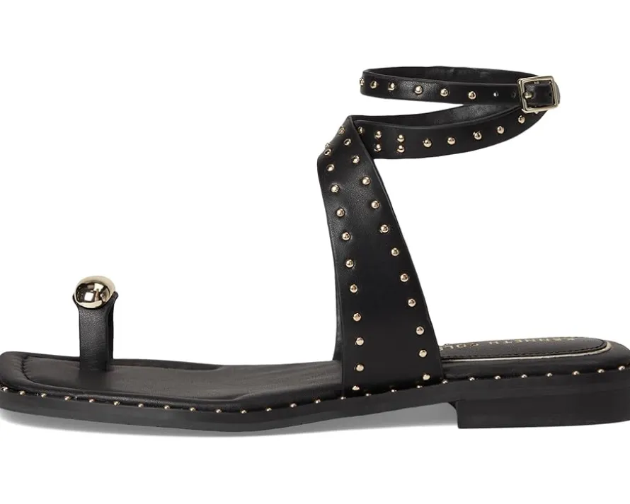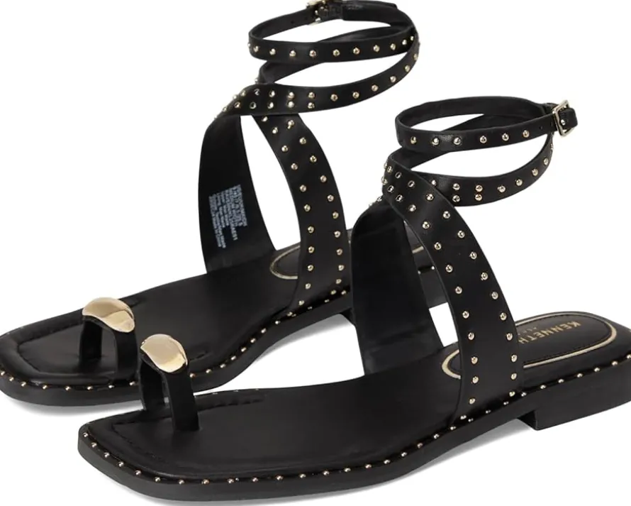 - The Kenneth Cole New York® Ravenn is a comfortable flat sandal with ankle wrap detail and toe thong. With an open square toe silhouette, the footwear features faux leather upper construction and adjustable buckle closure.