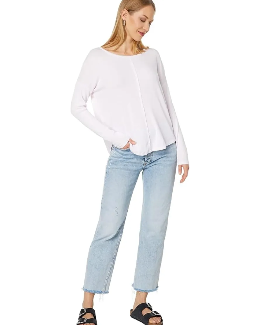 - The bobi™ Los Angeles Raw Edge Long Sleeve Top is perfect to pair with your high-waisted pants.