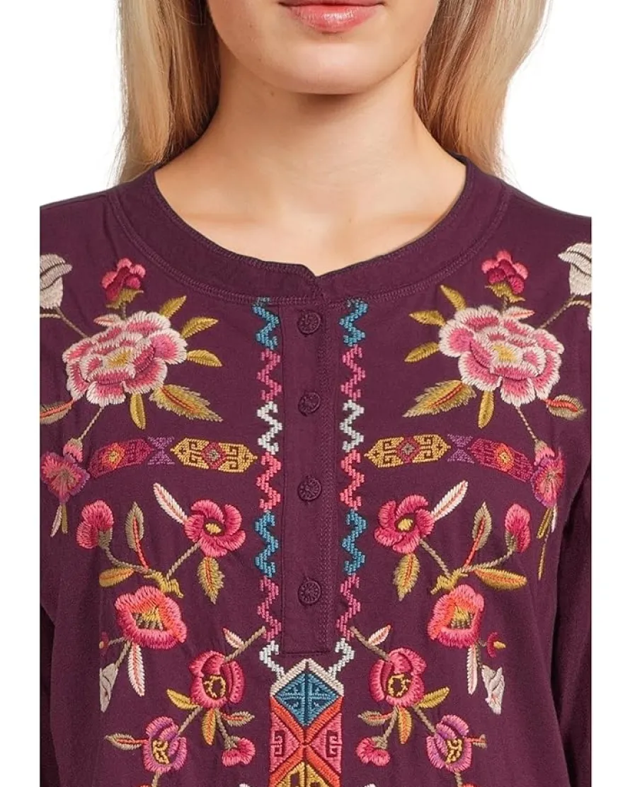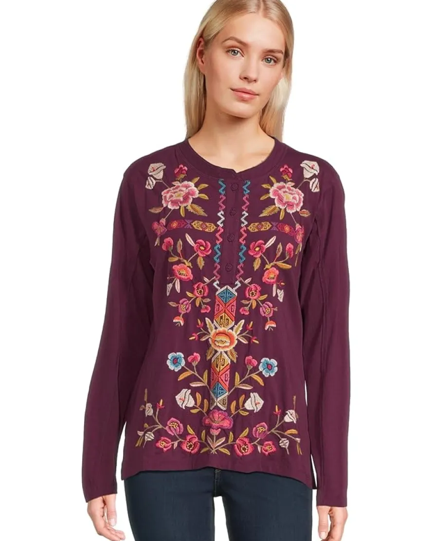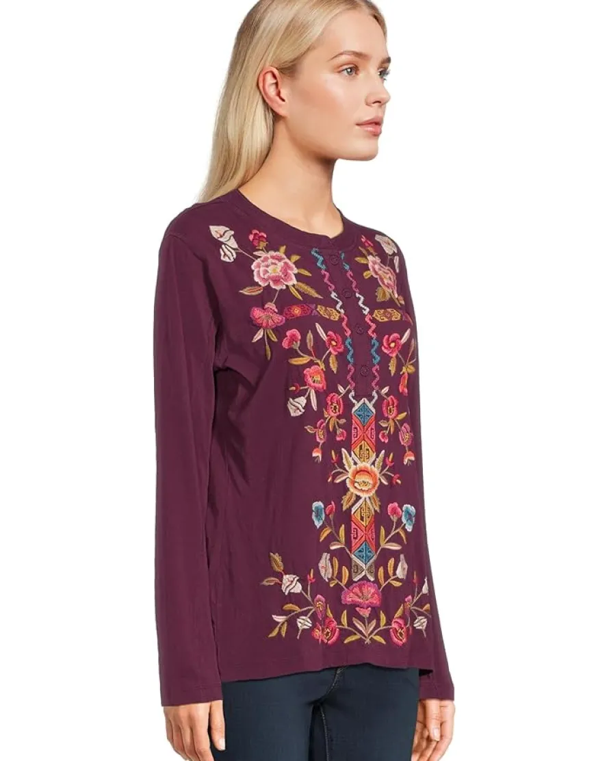 - Vibrant and artisanal, the Johnny Was® Raw Seam Henley- Anaya blouse is brought to life with intricate embroidery in beautiful shades. Its relaxed silhouette and long sleeves make it as comfortable as it is striking, perfect for adding a pop of color and craft to everyday looks.