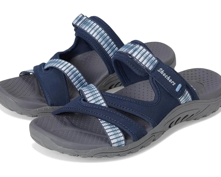- Take every step forward with improved comfort and functionality wearing SKECHERS® Reggae – Color-Full Sandals. The slip-on style strappy sandal features a soft suede and webbing fabric upper with ombre fade, an instep hook-and-loop closure, leather lining, ethylene-vinyl acetate insole, and a lightweight & flexible supportive Reggae midsole.