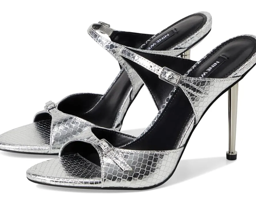 - Step up your shoe game choosing the Nine West® Reida dress sandals. It features fashionable stiletto heels, open toes and slip-on silhouette. They have double strap upper design with buckle detail. The Reida is a must-have wardrobe staple! Founded in 1978, Nine West empowers women to take on the world in style, from day to night.