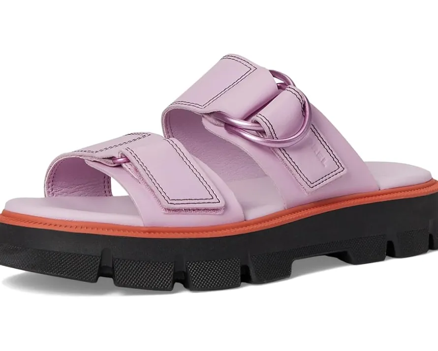 - This is a slide sandal that’s made to do more. More design details, more comfort, and more premium finishes. It’s the warm weather of the SOREL® Rein CB™ Slide Sandals. Crafted from full-grain leather upper with metal D-ring detail, synthetic lining, plush EVA foam footbed with synthetic topcover, molded FEATHERTREAD rubber with EVA drop-in midsole, and molded FEATHERTREAD rubber outsole.