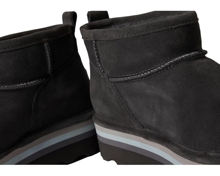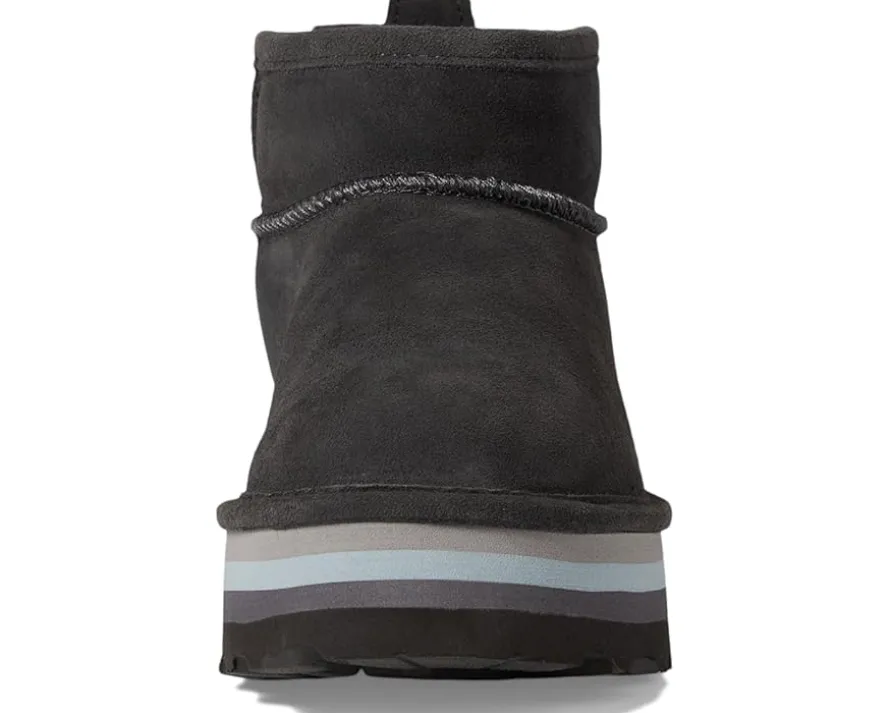 - Treated with BearCoat®, the BEARPAW® Retro Shorty boots have a cozy wool blend lining and removable footbed to keep your feet comfortable. With a thick platform sole, the pull-on footwear has a back pull tab for wearable ease.