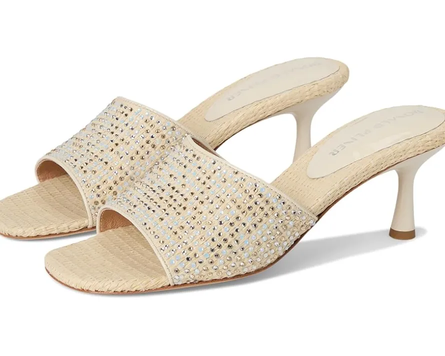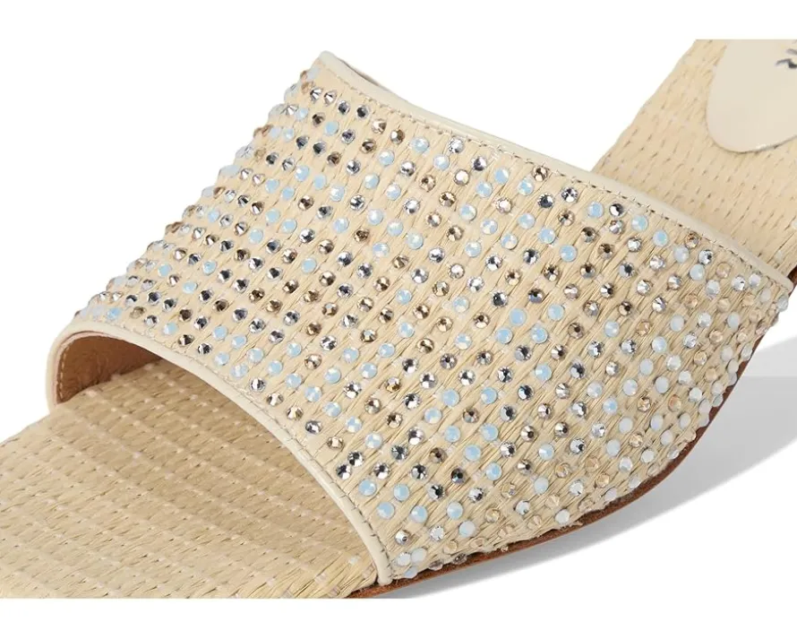 - Step into relaxed sophistication with the Donald Pliner® Rikki slide sandal, designed with a beaded woven raffia upper and a soft square toe. The sculpted mid-heel offers just the right amount of lift, while the memory foam padded insole ensures lasting comfort. Whether dressing up or down, this sandal delivers style with ease.