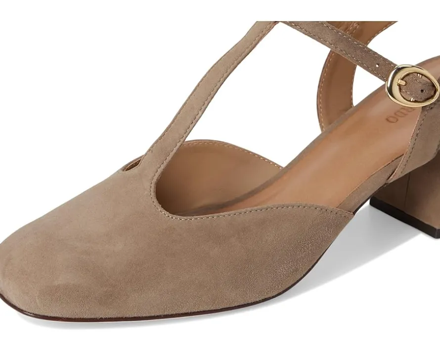 - The Bernardo® Romi is designed to elevate your everyday style with its classic T-strap silhouette and a secure buckle closure. This pump is crafted from supple leather and set on a block heel for stable, all-day wear. The square toe adds a modern edge, while the leather insole and outsole ensure a luxurious feel with every step.