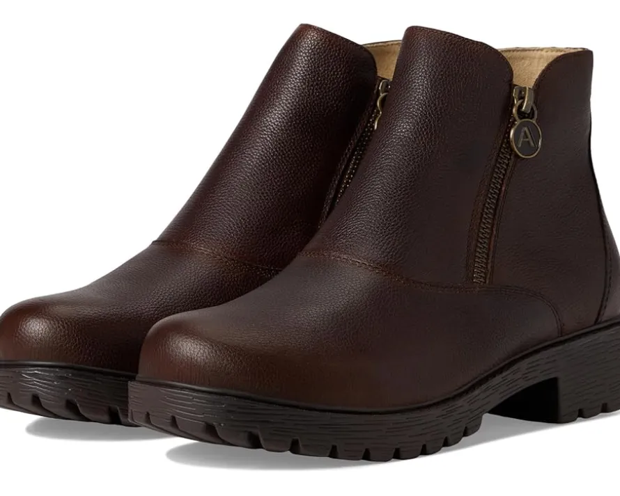 - Step boldly in the Alegria® Rorie ankle bootie set on a slip-resistant luxe lug outsole. It features double zippers for easy on-and-off. Inside, there’s a suede-lined removable footbed made of polyurethane, cork, and memory foam.