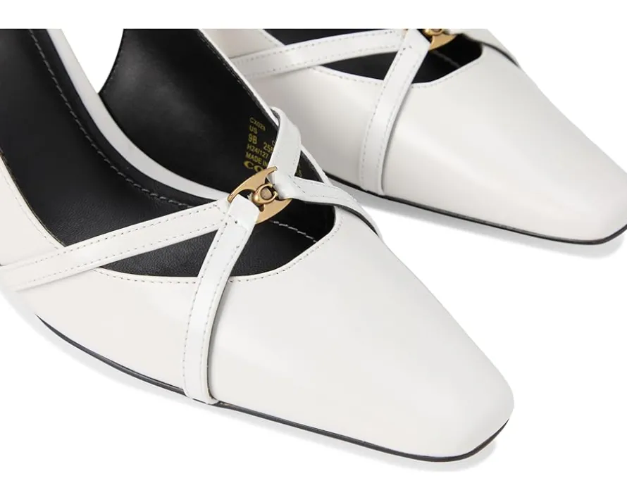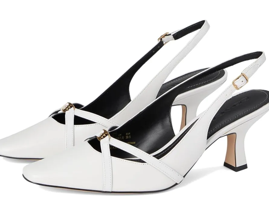 - A touch of timeless: The COACH® Rowyn Slingback – experience effortless sophistication. Crafted with a luxurious leather upper and outsole, complemented by a sleek faux leather lining and insole, these slingbacks redefine chic. The square toe design offers modern flair, while the kitten heel delivers all-day wearability. A secure ankle buckle closure ensures a tailored fit, making these the perfect companion for everything from office meetings to evening soirées.