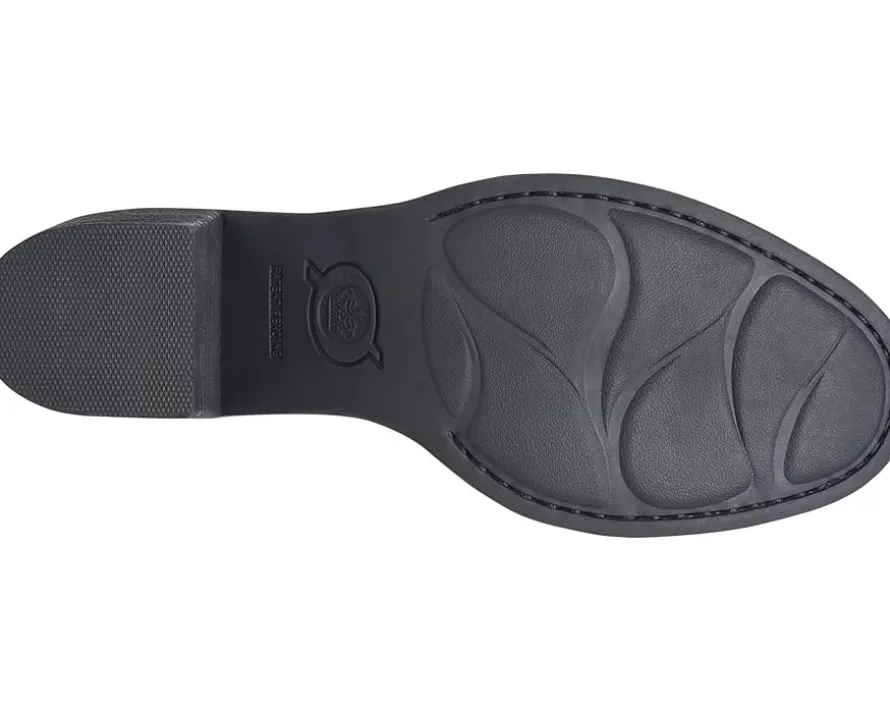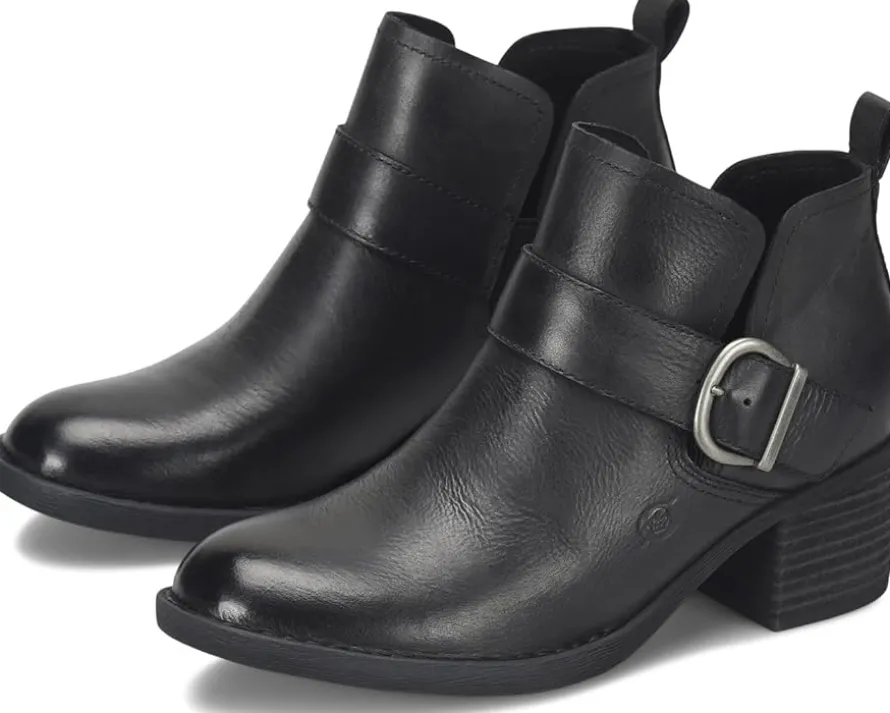 - Børn®’s low-heeled boot, accentuated by a chic side buckle, adds a touch of sophistication to this versatile and comfortable footwear choice. Crafted from a hand-finished full grain leather upper, breathable soft fabric suede lining, and a soft fabric suede covered footbed with extra foam for added comfort.