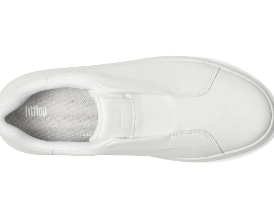 - Meet your new everyday obsession, the FitFlop™ RTG Leather Laceless Sneakers. Crafted for the woman who’s always on the move, these sleek kicks blend minimalist fashion with powerhouse comfort. The supple leather upper hugs your foot, while the slip-on design makes getting out the door effortless. Perched on FitFlop’s ultra-light Anatomicush™ midsole, you’ll enjoy deeper cushioning, natural arch support, and grooves that flex with every stride. The wedge heel adds subtle lift, while grip-ready rubber outsoles keep you steady from sidewalk to weekend strolls. With soft padding, airflow perforations, and a sporty-chic silhouette, these sneakers bring runway vibes to real life. Plus, the ergonomic design helps optimize alignment and movement so you feel as good as you look. Finished with a debossed logo and heel stitch detail, they’re proof that modern comfort and timeless style can walk hand-in-hand.