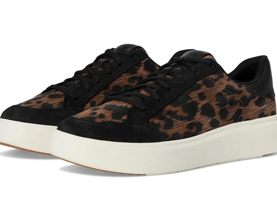 - With its Rtg Leopard Suede Sneakers, FitFlop™ has created the ultimate modern sneaker for your on-the-go lifestyle. These feature a slightly chunkier silhouette (enhancing the cushioning), sportier feel, and refined, tailored shape. This statement suede upper comes with a modern-abstract leopard print and faux-leather tongue. There’s also soft padding, breathability holes, and heel ‘stitch’ detail. The ultra-light, all-day cushioning Anatomicush™ midsole with flex grooves across the bottom lets your feet move freely, while the suede upper is Scotchgard™ protected. These modern sneakers are made of a polyester insole and lining. They are ergonomically engineered to help optimize your body’s alignment, natural movement, & energy, and offer natural arch support. With slightly deeper cushioning made from a new extra-light EVA foam, these shoes are grip suited to everyday use/road tread. Their upper, footbed lining, and laces are made from 100% recycled polyester. These lace-up sneakers are styled with a debossed FitFlop™ logo on the tongue and back of the outsole.
