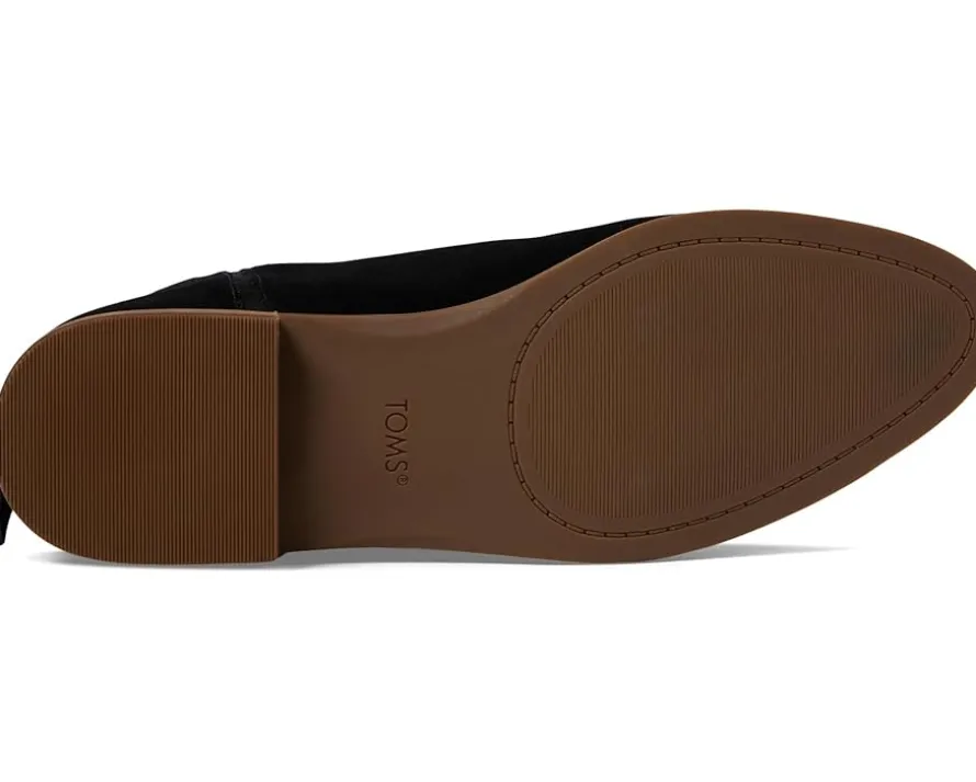 - Conquer the day wearing the classic TOMS® Rylie. Crafted from suede upper, polyester lining, and polyurethane insole, this pair of flat ankle booties features zippered back closure, almond toe, topline cutout detailing with quarter underlay, and stacked leather wrapped heel for a modern look.