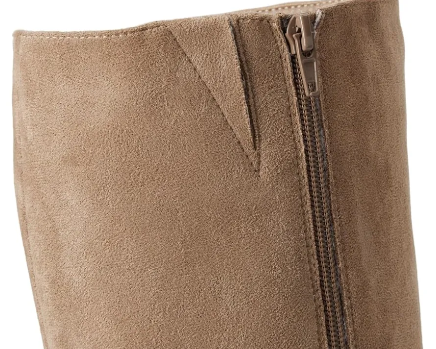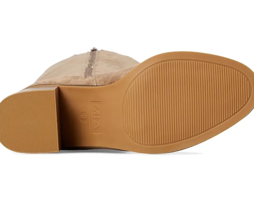 - Tall boots have officially entered the chat. Crafted from suede and finished with a convenient zippered side closure, the MIA™ Sabrena-N boots feature knee-high length and block heels for a sleek look. These heeled boots are made of a faux suede upper, foam insole, and faux leather lining. Pair these knee-high boots with your favorite sweater dress to complete the fall look.