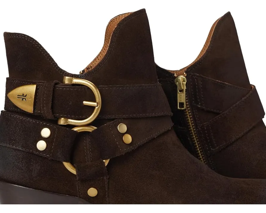 - Make a bold statement donning the confident and free-spirited Frye® Sacha Multi Strap Bootie. Add character and authenticity to your footwear collection with the vintage leather and suede options, and transition comfortably from day to night with the chunky block heel. This ankle-bootie features multiple straps and buckle harness accents. Choose between warm and earthy tones to pair these booties with a boho maxi dress for a whimsical ensemble, or opt for a denim pencil skirt to channel urban sophistication.