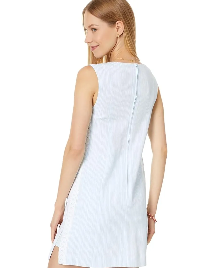 - Styled with top-applied lace detail and side slits, flaunt your great style curves wearing the Lilly Pulitzer® Sadie Shift Romper. The LENZING™ ECOVERO™ viscose fabric of the dress offers superior comfort and breathability. This romper dress comes with a sleeveless style, crew neckline, and straight hem. The zippered back closure ensures easy wear. From casual parties to events, this short dress works for different occasions.