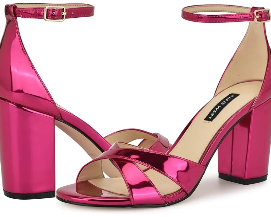- Fall in love with the simplicity of Nine West® Saile dress sandals. It features a high block heel, an adjustable ankle strap, and criss-cross straps. They are crafted with polyurethane upper and lining, and rubber insole. This sandal will elevate any outfit! Founded in 1978, Nine West empowers women to take on the world in style, from day to night.