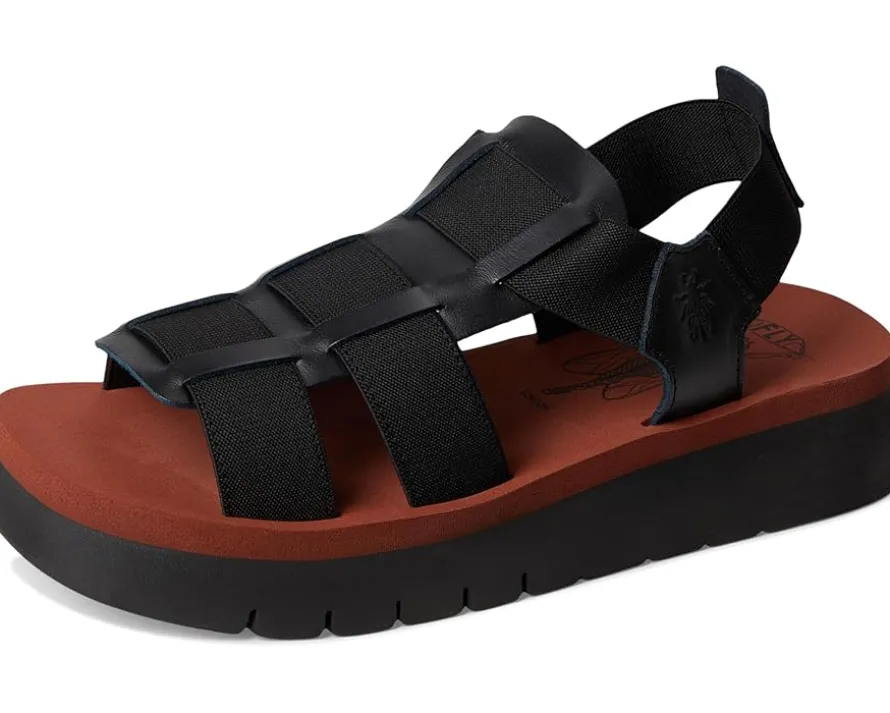 - Strut in confidence wearing the FLY LONDON® SAMB245FLY. Crafted from leather upper, lining, and foam insole, this pair of sandals features open round toe, wedge heel, thick foam cushioning, and pull-on style. Wear it whether going for a long summer stroll or spending the day on your feet.