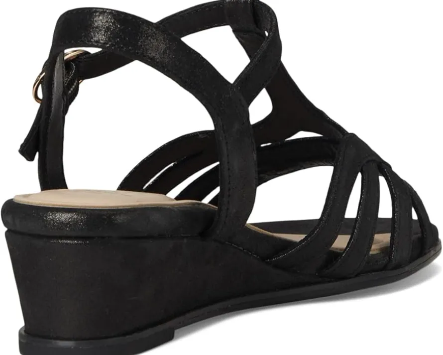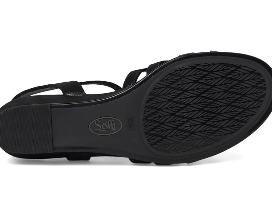 - Slip into something stylish wearing the Sofft® Scarlet. Crafted from leather upper, breathable leather lining, and leather-lined cushioned footbed, this pair of sandals features open round toe, contoured sock, ankle strap, and strappy silhouette adds a trendy flair, while the solid wedge heel keeps your steps supported.