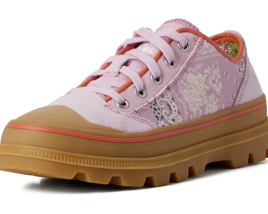 - Iconic soles are true to SOREL® heritage, and that comes through in the SCOUT N ABOUT™ Low Sneaker. It’s a statement sneaker that’s made to go from the streets to outdoor adventures. Crafted from a canvas upper, these shoes offer a lace-up closure in a round toe silhouette, textile quarter panel and eyestay with leather or suede overlays, and a molded rubber toe cap.