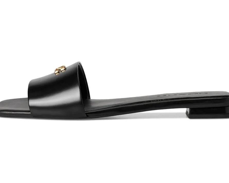 - Slide in, step out, and feel the freedom wearing the COACH® Sculpted C Sandals. Crafted from leather upper, man-made leather lining, and rubber insole, this pair of slip-on’s features open square toe, wide strap detailing with brand hardware logo, low-top silhouette, low stacked heel, and brand detailing on the footbed.