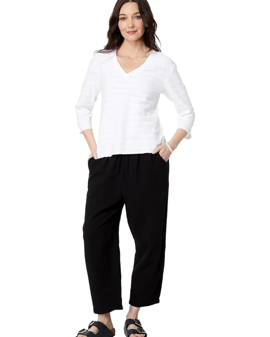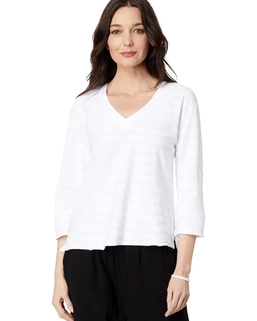 - Designed to add a subtle elegance and comfort to your warm weather style, the Mod-o-doc™ Shadow Stripe French Terry 3/4 Sleeve V-Neck Hi-Low Top is a must-add to your closet this season.