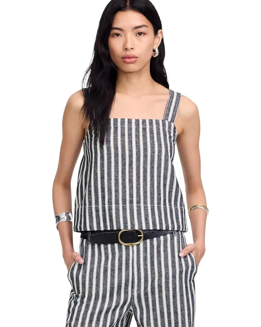 - Designed with a relaxed silhouette and timeless stripes, the Madewell® Shania Top – Striped Twill Linen is perfect for warm-weather days. The breathable fabric and sleeveless construction make it ideal for everything from brunch outings to seaside strolls.