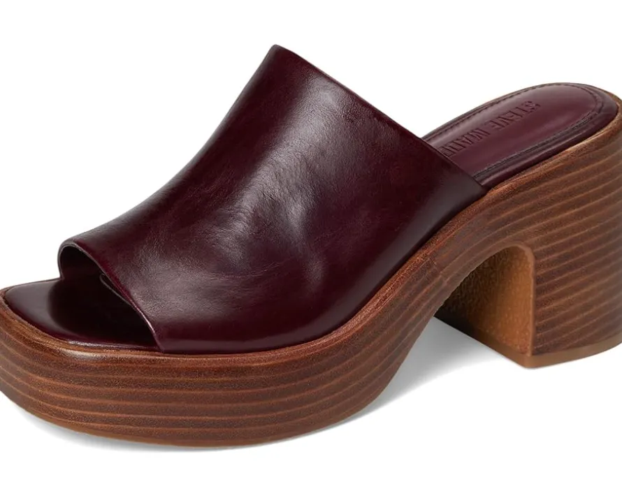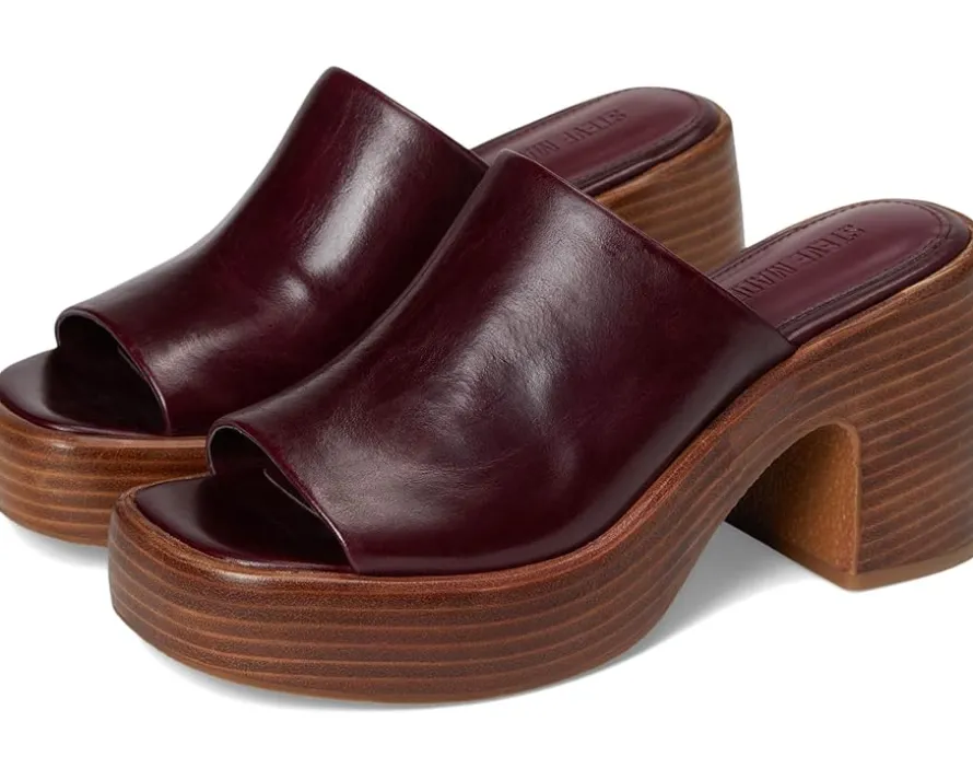 - Turn heads in the bold and beautiful Steve Madden® SHANTON – a retro-inspired mule reimagined for the modern muse. Crafted with a rich suede upper and styled with a sleek toe strap, Shanton effortlessly blends nostalgic flair with everyday wearability. The chunky block heel and platform sole bring instant elevation, literally and stylistically, giving your outfit that extra oomph without sacrificing comfort. A faux leather lining and insole provide a soft, supportive step, while the slip-on silhouette makes them your new go-to for easy, confident style. Finished with a durable synthetic rubber outsole, these mules are perfect for strutting through city streets or dancing the night away.