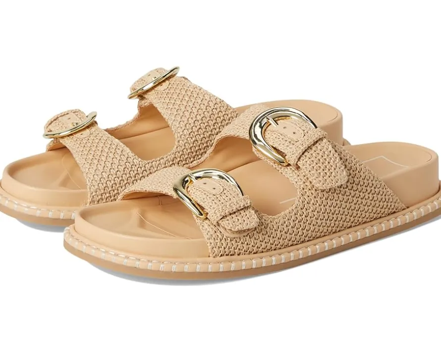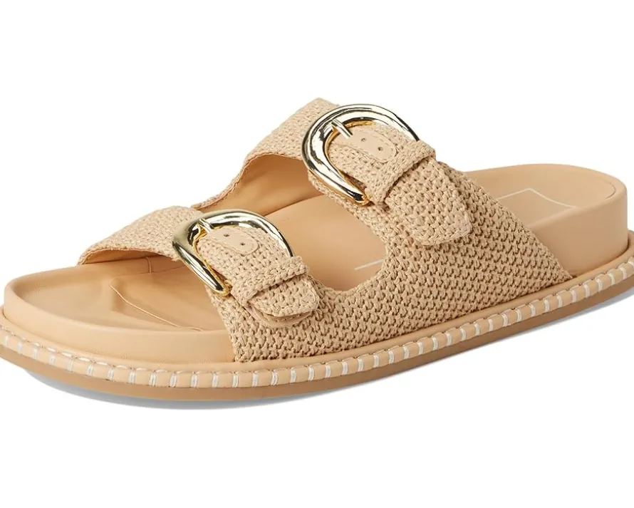 - The Dolce Vita® Shauny sandal combines comfort, style, and versatility in one perfect design. Ideal for any occasion, it offers a reliable and fashionable option for all-day wear. Crafted from hemp upper, leather lining, and insole, this pair of slip-on style sandals features double strap with buckle detailing, open round toe, and brand detailing on the footbed.