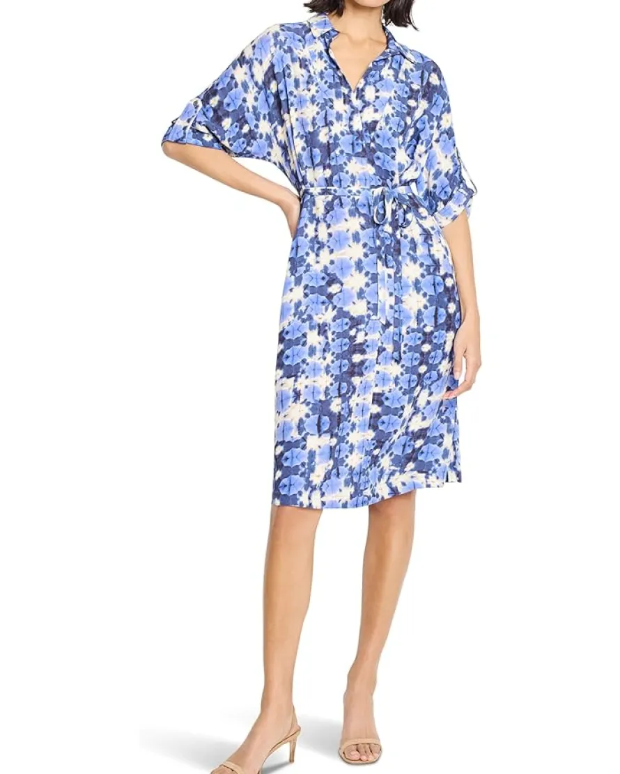 - The NIC+ZOE™ Shibori Stone Belted Devon Dress brings timeless style to life with a bold print inspired by the Japanese art of Shibori dyeing. Crafted from printed woven fabric in a relaxed A-line silhouette, this dress falls at the knee for that flattering, just-right length. The classic Devon shape is reimagined with smart updates, think dolman elbow sleeves, a shirt collar, and side tabs that elevate the look. A self-tie belt cinches the waist for customizable comfort, while front welt pockets add functional flair.