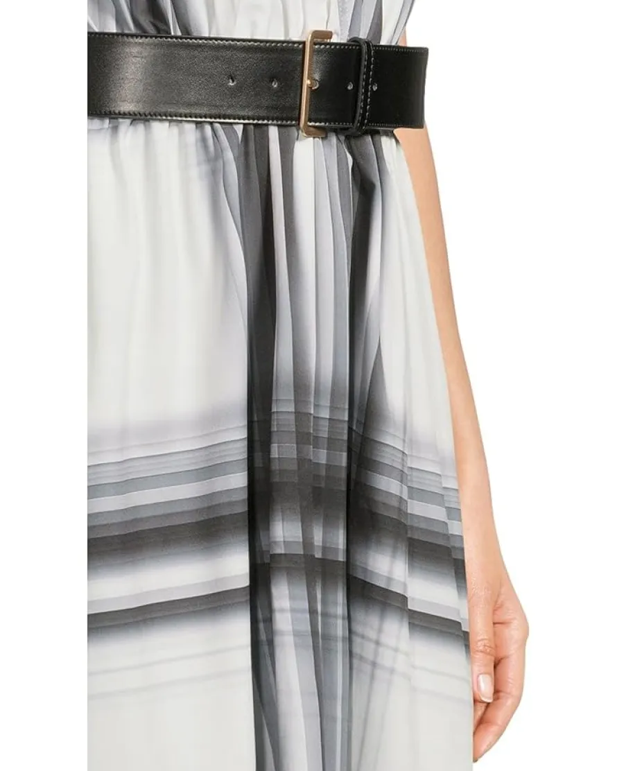 - From the desk to dinner, maintain your effortless style in the Calvin Klein® Short Sleeve Printed Belted Commuter dress. Featuring a V-neckline, short sleeves, belted waist and an A-line silhouette in a midi length.