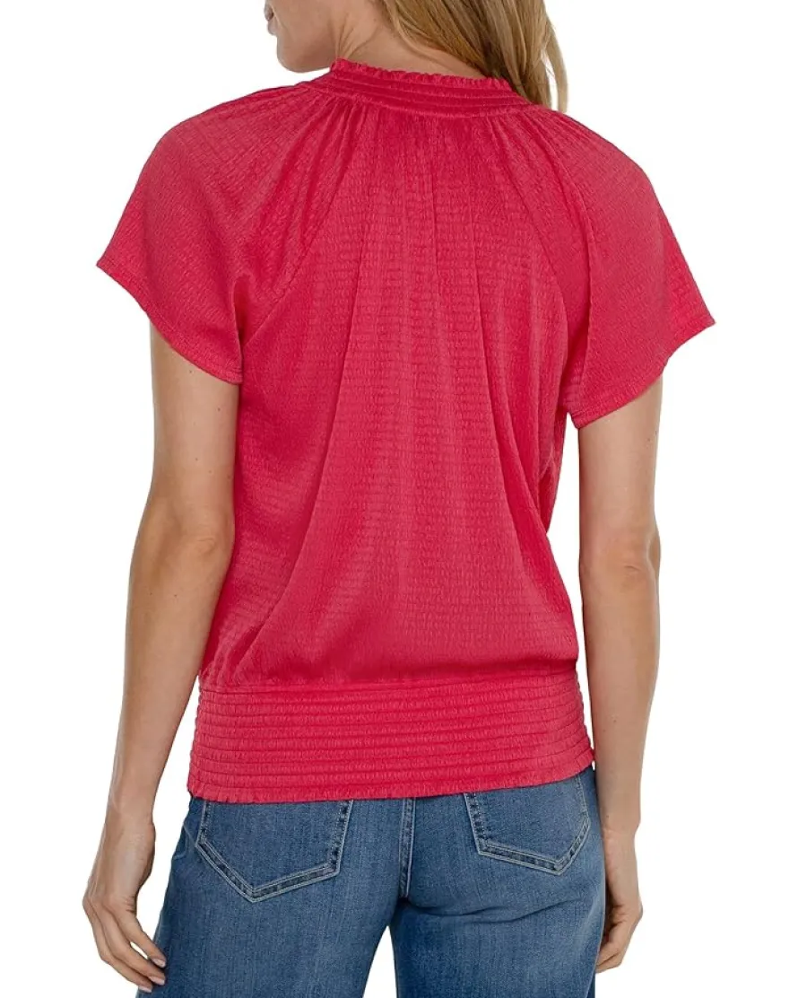 - Show off your fabulous collection donning the Liverpool™ Los Angeles Short Sleeve Smocked Raglan Knit Top with Neck Tie. The cute top features V-neckline with self tie detailing, smocked straight hemline, and pull-on construction.
