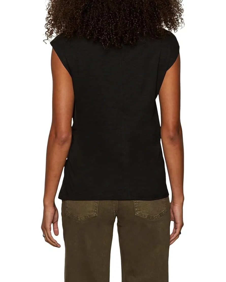 - The Sanctuary™ Side Tie Muscle Tee is a must-have addition to your wardrobe! With its classic crew neckline and trendy side tie detail, this tee is perfect for all your casual outings. The short sleeves and straight hem add a touch of versatility, making it easy to dress up or down. Stay stylish and comfortable in this chic muscle tee!