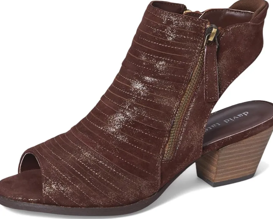 - Treat yourself to the David® Tate Sideview. These ankle boots feature a luxurious suede upper, complemented by a nylon lining for all-day comfort. The dual side zippers not only add a touch of edgy flair but also ensure easy on-and-off wear. Walk confidently on durable rubber soles that offer superior traction and stability, while the cuban heel provides just the right amount of lift.