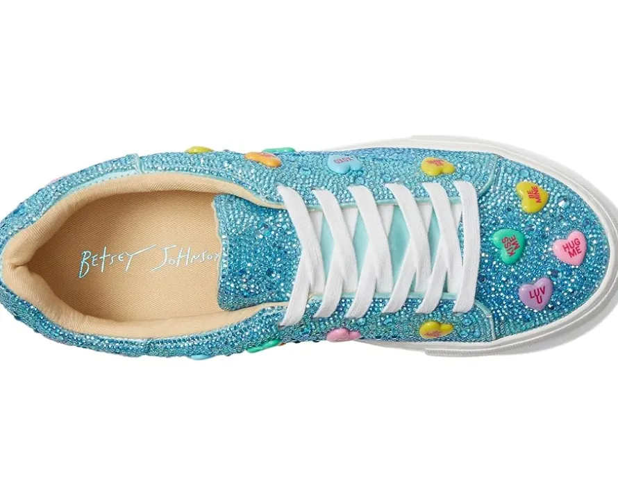 - The Blue™ by Betsey Johnson Sidny sneaker will lend a dose of glam to your casual days with a rhinestone-encrusted fabric upper, low-profile silhouette, padded collar, and a round toe.