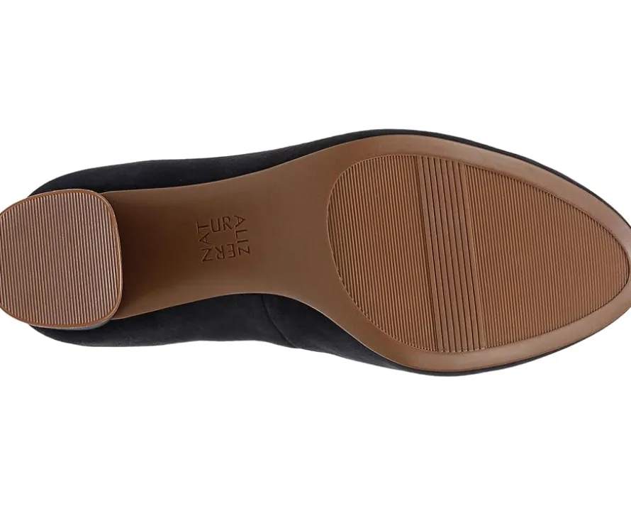 - The Naturalizer® Sienna are the gorgeous pumps! A delicate bow gives these heels something special. Comfortable + classic women’s pumps with a slip-on fit and Naturalizer “N” heritage ornamentation. They have suede or leather upper responsibly sourced from Leather Working Group certified tanneries and almond, closed round toe design. The REZORB™ responsive cushioning for shock absorption + impact protection for sneaker-level comfort in heels. The Contour+ Comfort technology for a premium fit and all-day comfort experience.