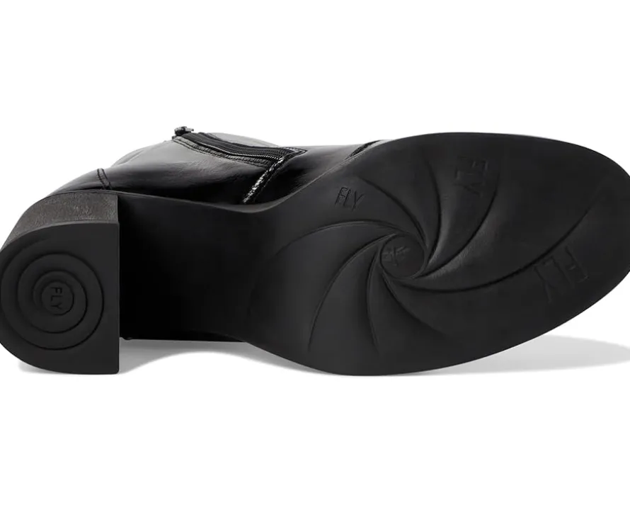 - The Sass Line from Fly London® features flared-out block heels and styling details to make it stand out. The Siju331fly features an inside zippered closure and stitch detailing around the heel. It has a rubber sole with a rounded toe shape and a heel-to-toe cushion insole.