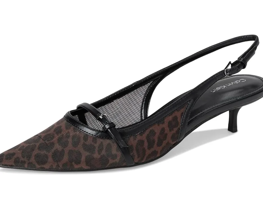 - Sleek sophistication meets modern glamor in the Calvin Klein® Simira. Designed for women who want polish with comfort, this dress pump blends timeless elegance with everyday wearability. Crafted with a smooth PU upper and a soft manmade lining, it ensures a luxe feel while staying lightweight. The adjustable slingback buckle strap provides a secure, personalized fit, while the pointed toe and chic kitten heel elevate your look with subtle confidence. A cushioned EVA outsole delivers all-day comfort without sacrificing style, making these heels perfect for workdays, nights out, or special occasions.