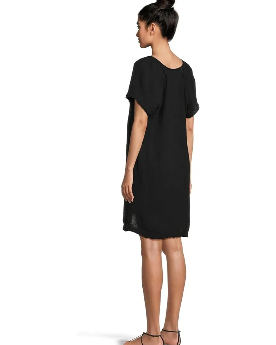 - Add a touch of elegance to your basic, everyday style wearing Michael Stars™ Sky Mini Dress. The pull-on style dress features a scoop neckline, drop shoulders, flutter sleeves, and pockets on the side for added functionality. The relaxed-fit flowy dress comes in a gauze fabric and is intended to hit above the knees.