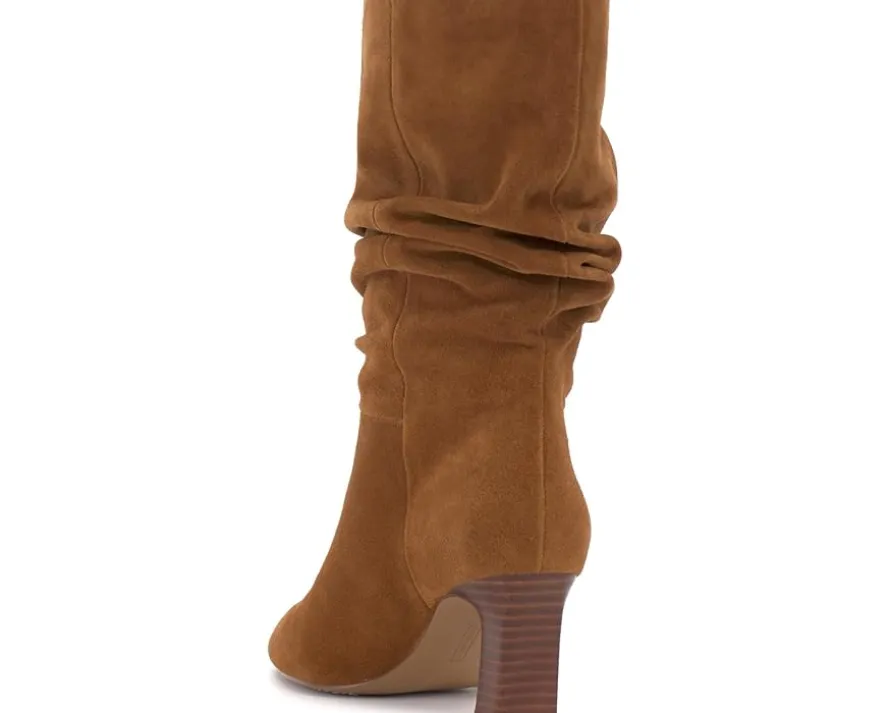 - Throw retro vibes wearing the Vince Camuto® Skylar. Designed with a slouch, the ankle-high boot will make every outfit look perfectly styled. The pull-on pair features tumbled leather upper with a chunky heel and snip toe silhouette.