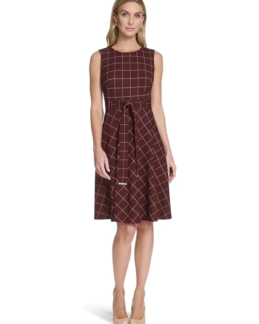 - Calvin Klein® Sleeveless Plaid Aline dress.