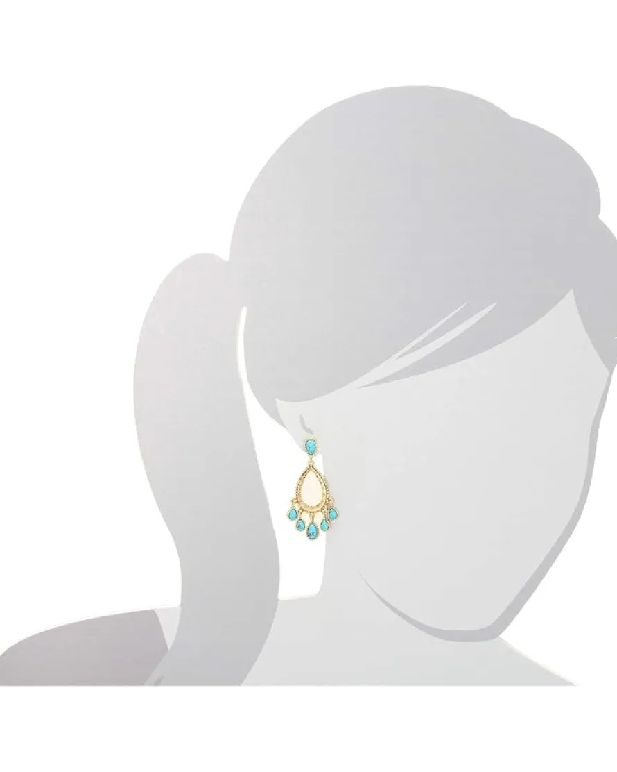 - Texture gold-tone hoops feature a dropped design and dangling turquoise stones.