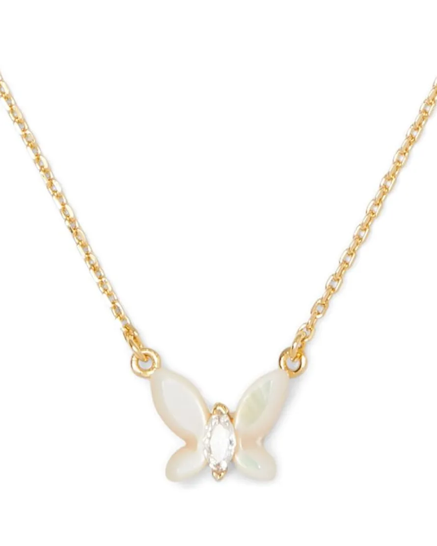 - Add a timeless touch to your jewelry collection with Kate Spade New York® Social Butterfly Pendant. Crafted with plated metal, enamel, cubic zirconia stone details, this pendant features a cute butterfly pendant and a signature lobster claw closure.